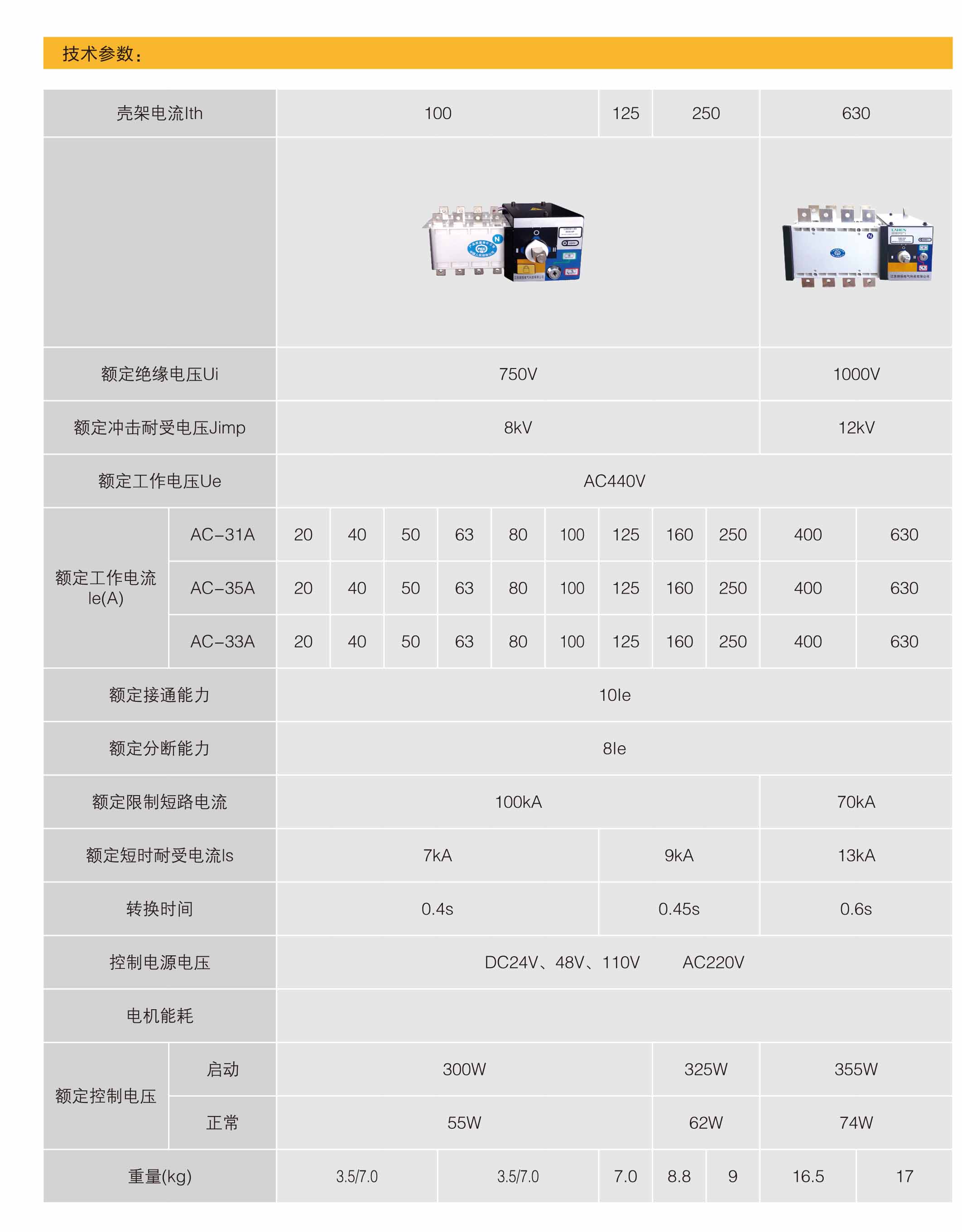 LHQ1系列雙電源開關轉換準確、靈活、順暢,使用壽命達8000次以上。運用雙列復合式觸頭、橫拉         式機構、微電機預儲能以及微電子控制技術,基本實現零飛弧(無滅弧罩)。具備滿負荷狀態下接通、         承載電流的能力;具有三個穩定的工作位置,有明顯的通斷位置指示;配備了可靠的機械聯鎖和電氣               聯鎖功能,有效實現電源與負載間的隔離。主要元器件選用國際知名品牌,如荷蘭PHILIPS公司、美國       MOTOROLA公司、德國VAGO公司和日本OMRON公司等。