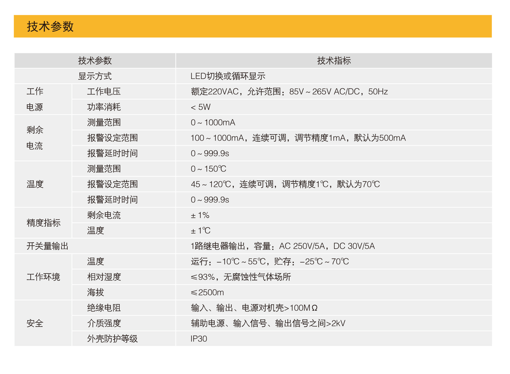 2、采用LED實時顯示監控回路的剩余電流、溫度、過電流值;