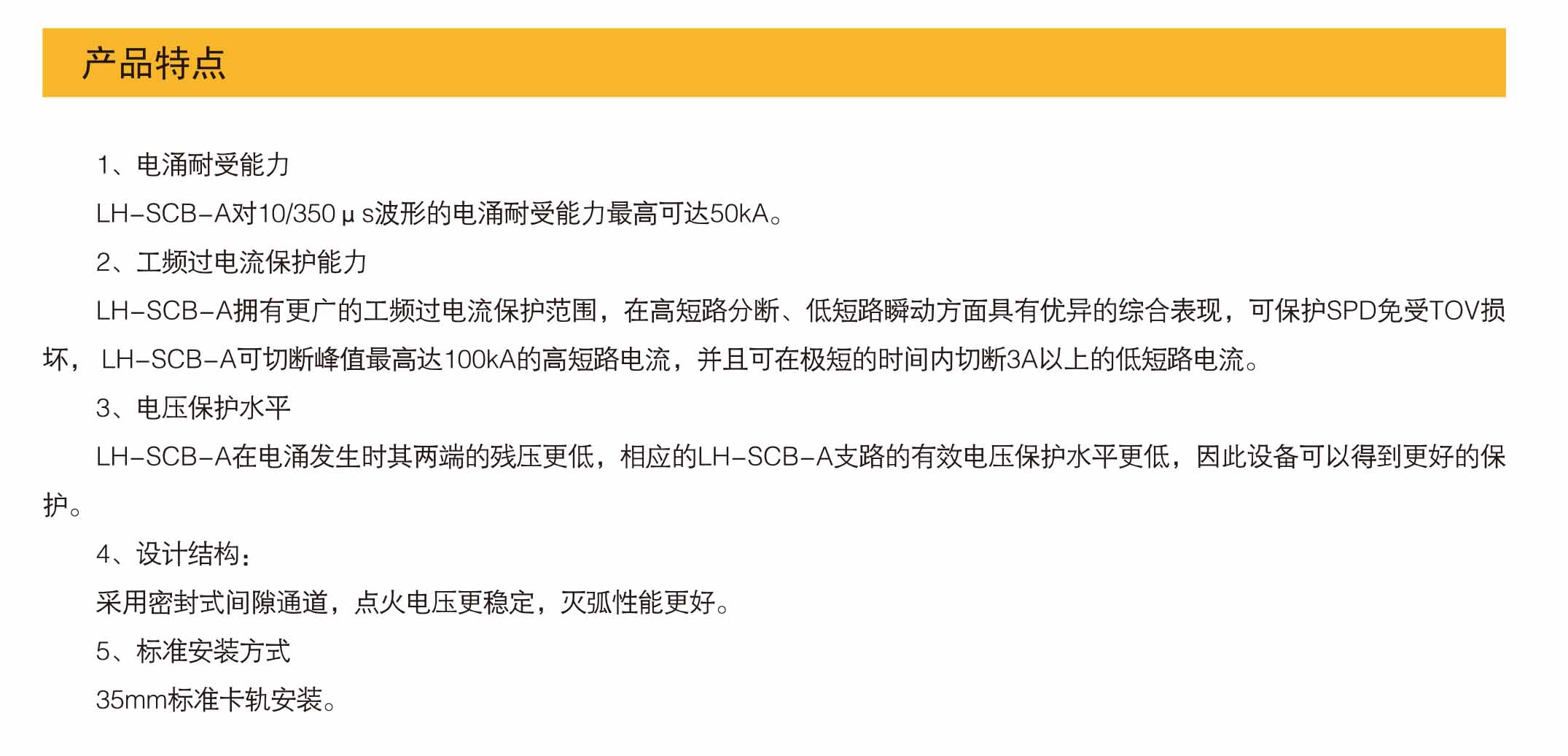 浪涌后備保護器(簡稱SCB ),LH-SCB系列浪涌保護器適用于交流5O/6OHz,額定電壓400V以下的供電系統中,用于保護因SPD短路失效或線路因TOV而出現的工頻短路。適應于工業、建筑、民航、金融、證券、數據中心、電信、機房、港口、軌道等系統的電源防護及信號防護,防止因防雷器劣化和電網故障引起的火災隱患,解決了因雷電引起的后備保護裝置誤動作造成的防雷器失效問題。