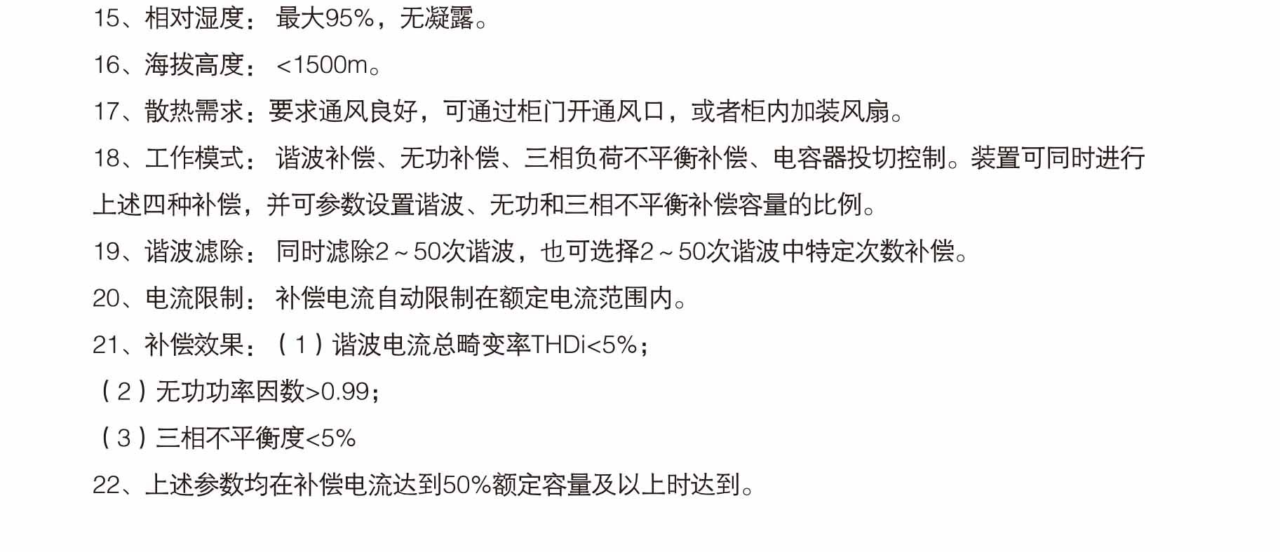 4、額定容量內補償后系統三相有功負荷電流不平衡度小于5%。